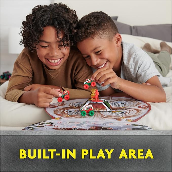 GIFTABLE ADVENT CALENDAR: Open your calendar and set up your mini–Monster Truck course on the built-in play area to recreate the action at home Kids will love this holiday gift